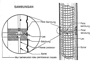 menggunakan overlap 40 kali diameter besi ditambah kait pada ujungnya
